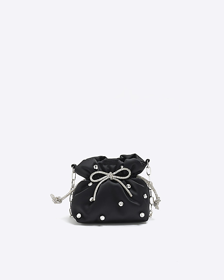 Black satin best sale drawstring bag
