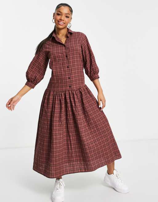 Burgundy check best sale dress