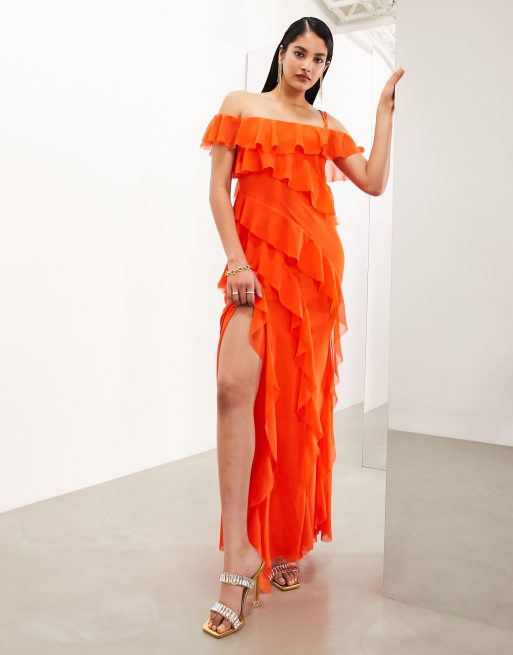 Chiffon bardot best sale maxi dress