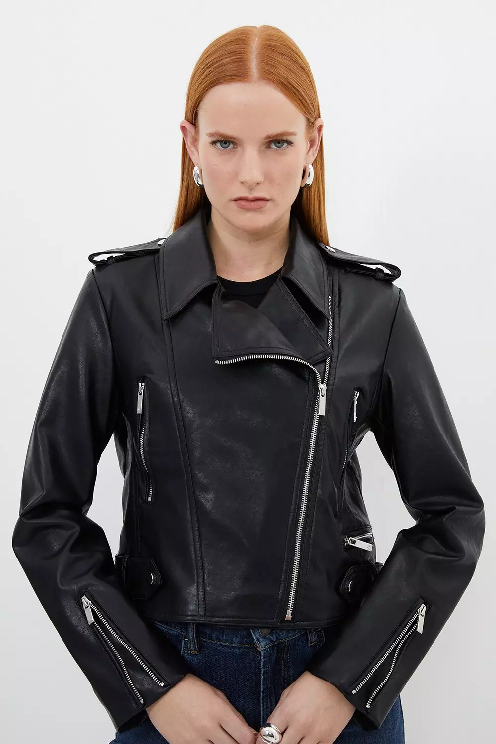 Product Item: Cropped faux best sale leather biker jacket