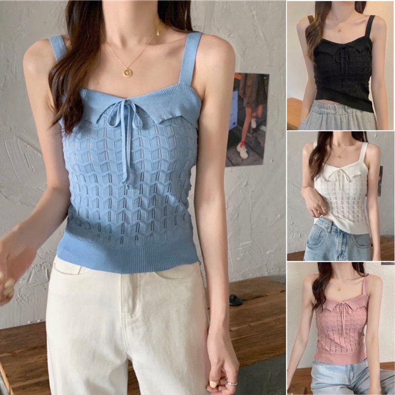 Product Item: Knitted spaghetti best sale strap top