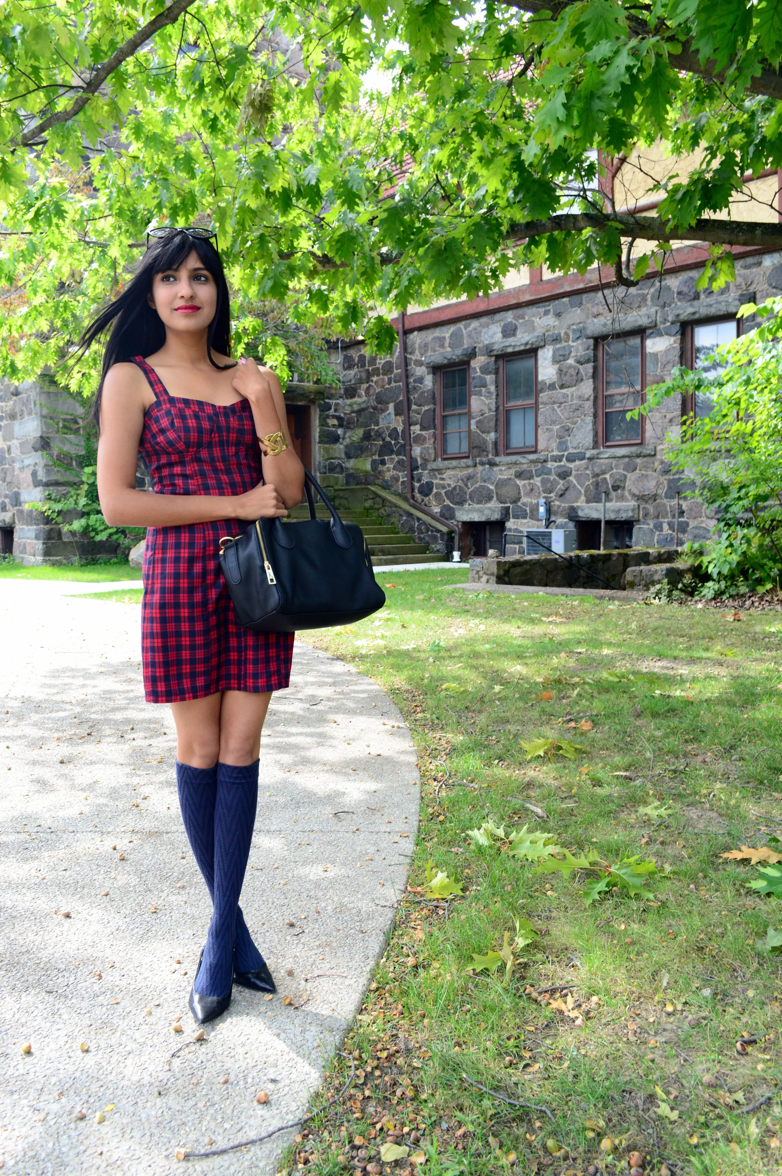 Plaid dress best sale with tights