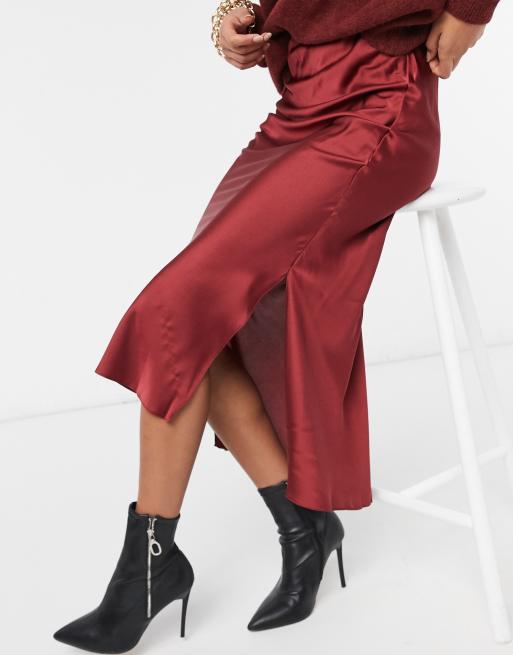 Satin midi best sale skirt burgundy