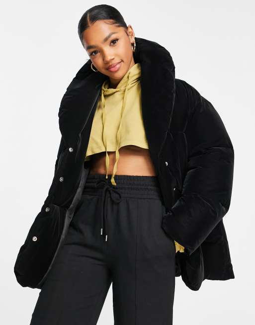 Topshop black best sale velvet puffer