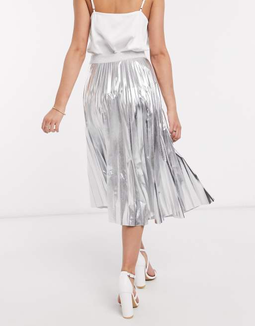 Topshop silver best sale pleated skirt