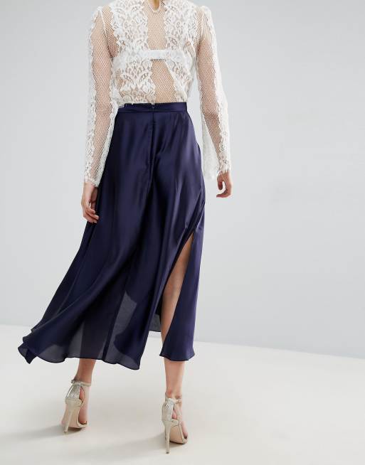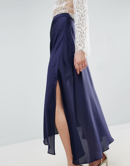 Asos midi skirt best sale in satin with splices