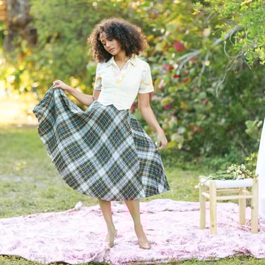 70s wool best sale plaid skirt