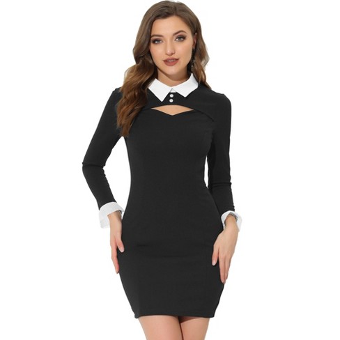 Black long sleeve dress best sale with white collar and cuffs