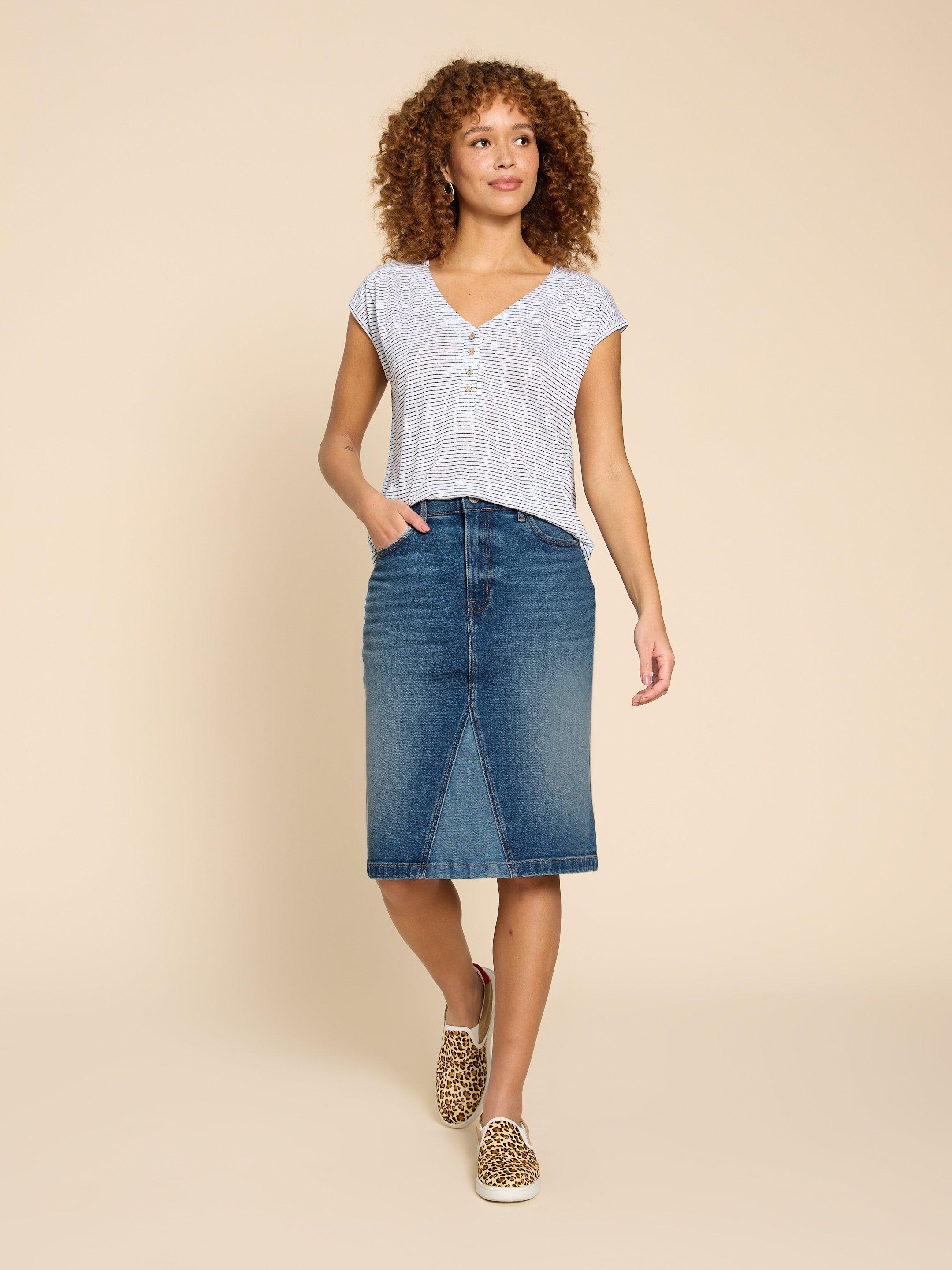Cheap knee best sale length jean skirts