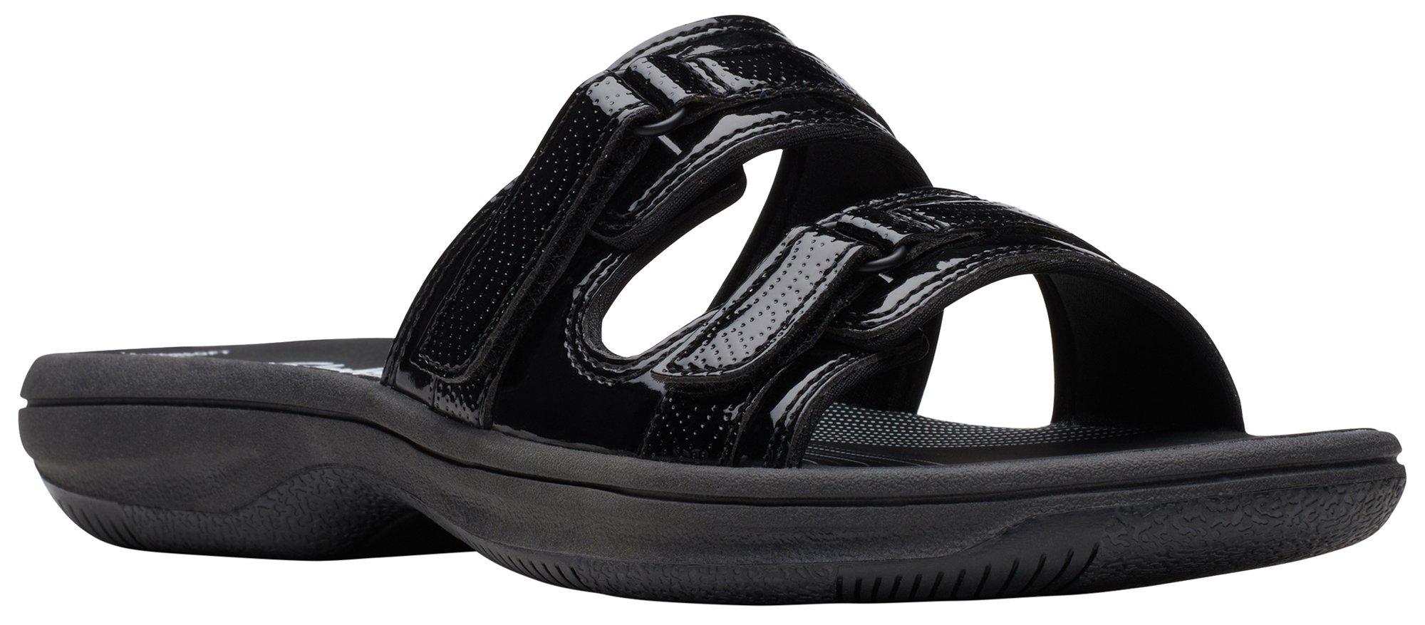 Product Item: Clarks black best sale patent flip flops