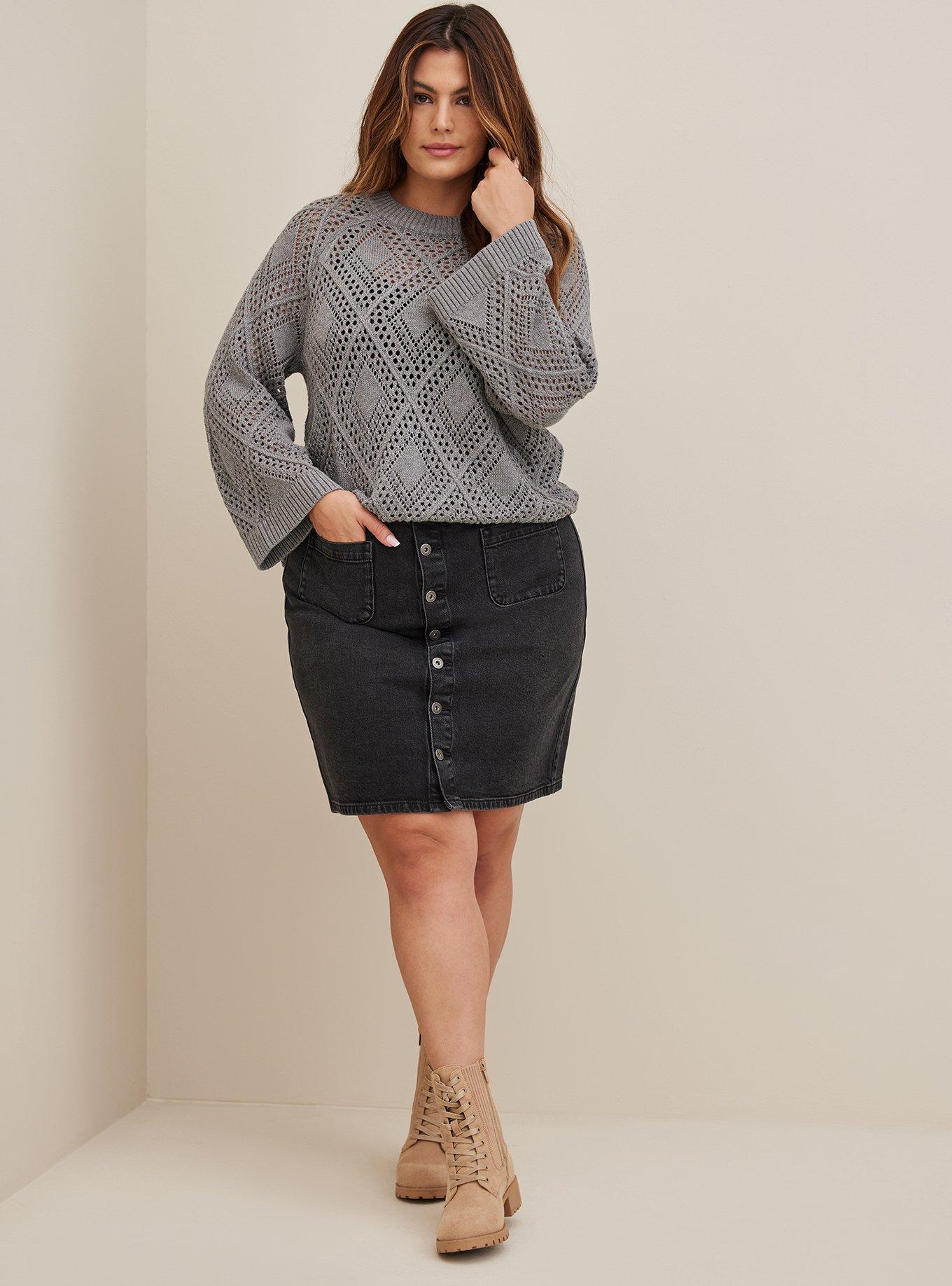 Black denim best sale skirt button front